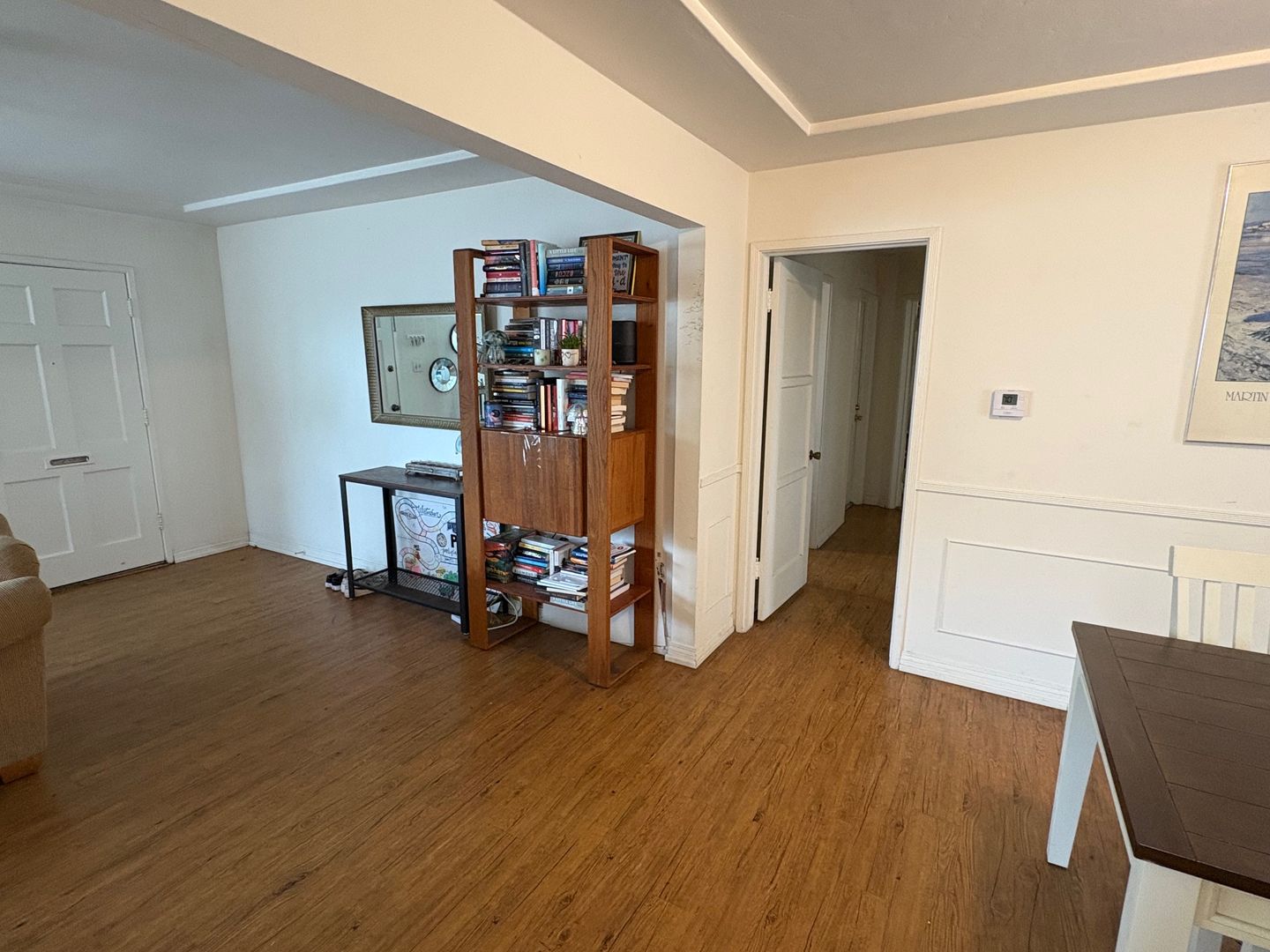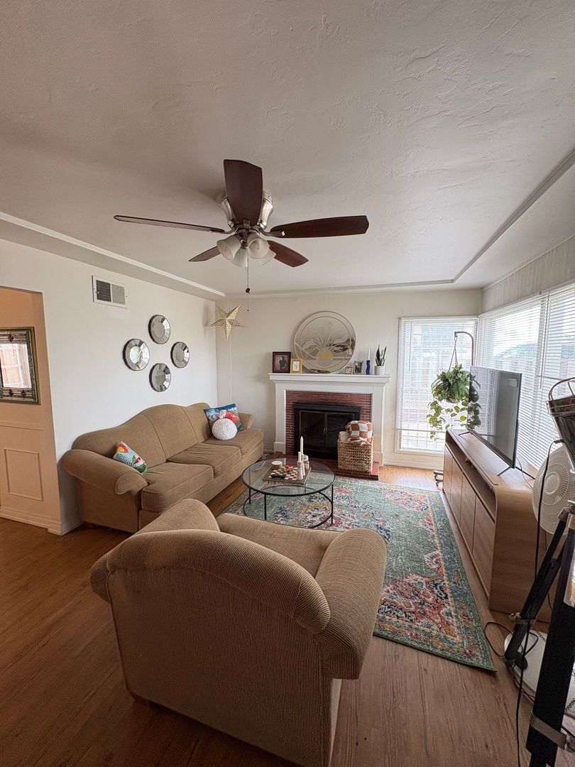 * Hardwood and laminate floors throughout living, kitchen, and hallways