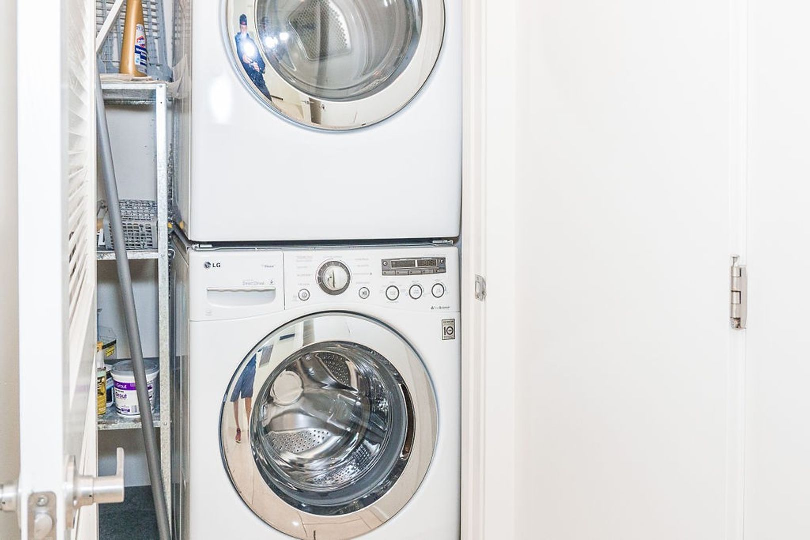 * Full size washer/dryer stacked in unit