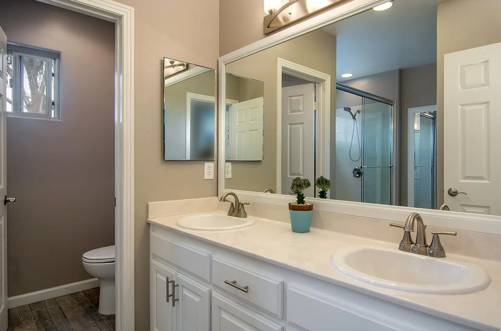 * Large master bath with custom dual head shower