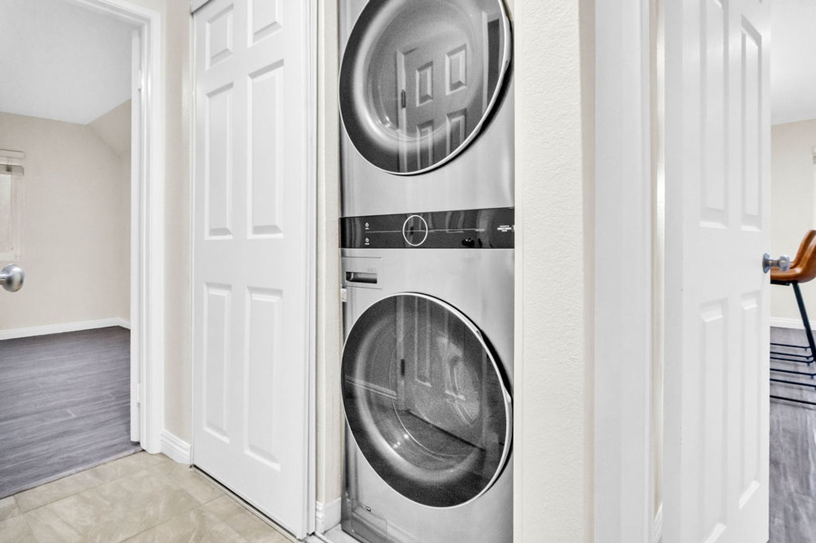 * Stack washer/dryer in interior closet