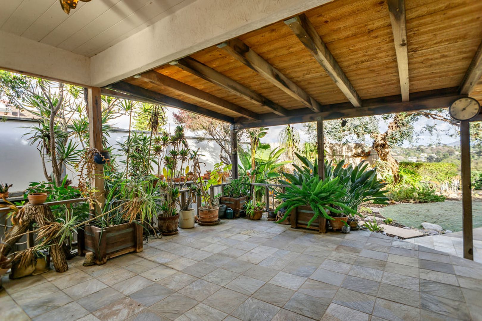 * Large outdoor patio with beautiful landscaping and canyon views
